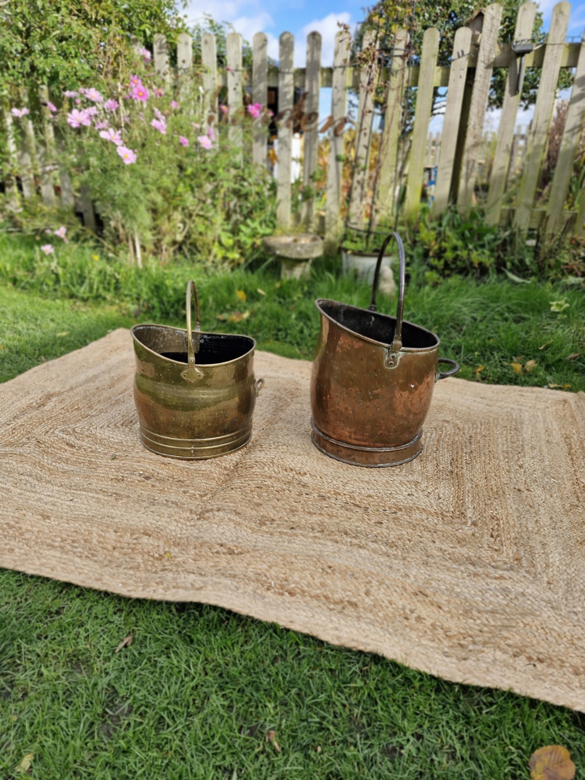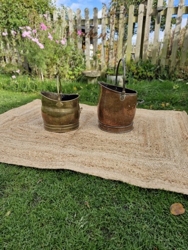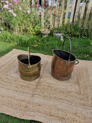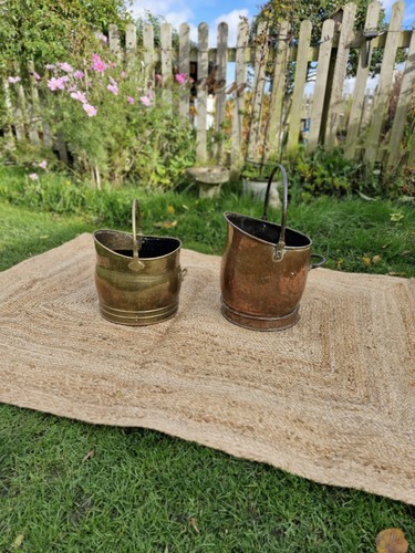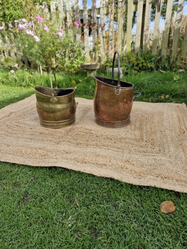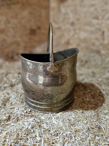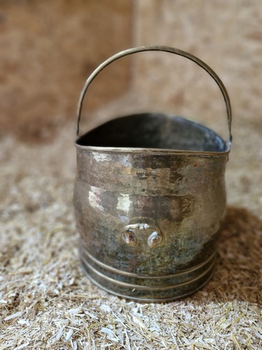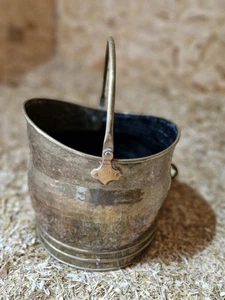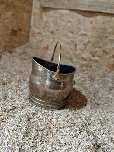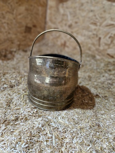 Antique Vintage Rustic Brass Fireside Coal Scuttle Bucket