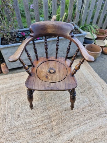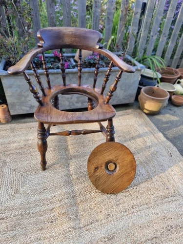 Antique Victorian Captains Chair Smokers Desk Bow / cammode chair.